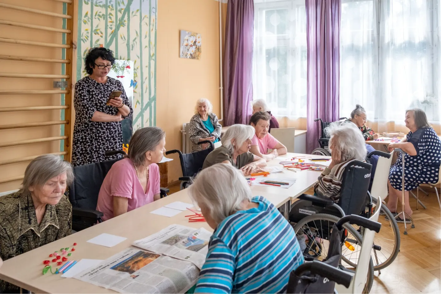 Здесь пожилые люди живут в ритме, который наполняет: занятия с психологом, арт-терапия, музыкальные встречи, тематические дни и прогулки по большой зелёной территории.